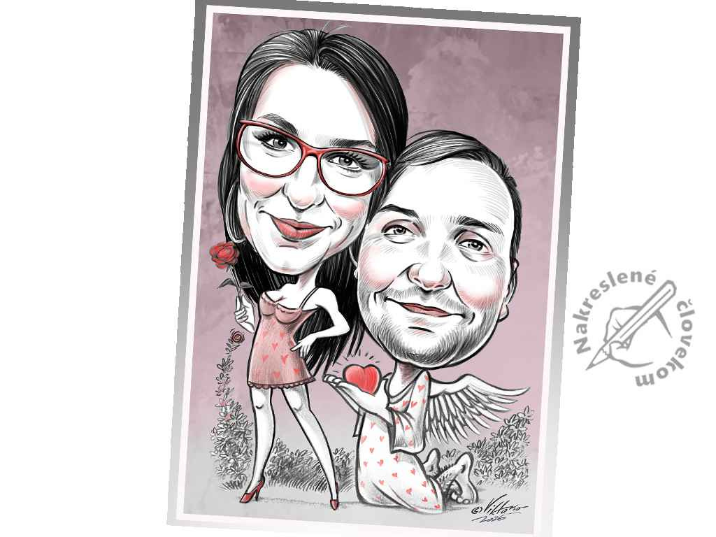 - Čiernobiela karikatúra v jemnom RETRO štýle z dodanej fotografie nakreslená do predlohy - SRDCE